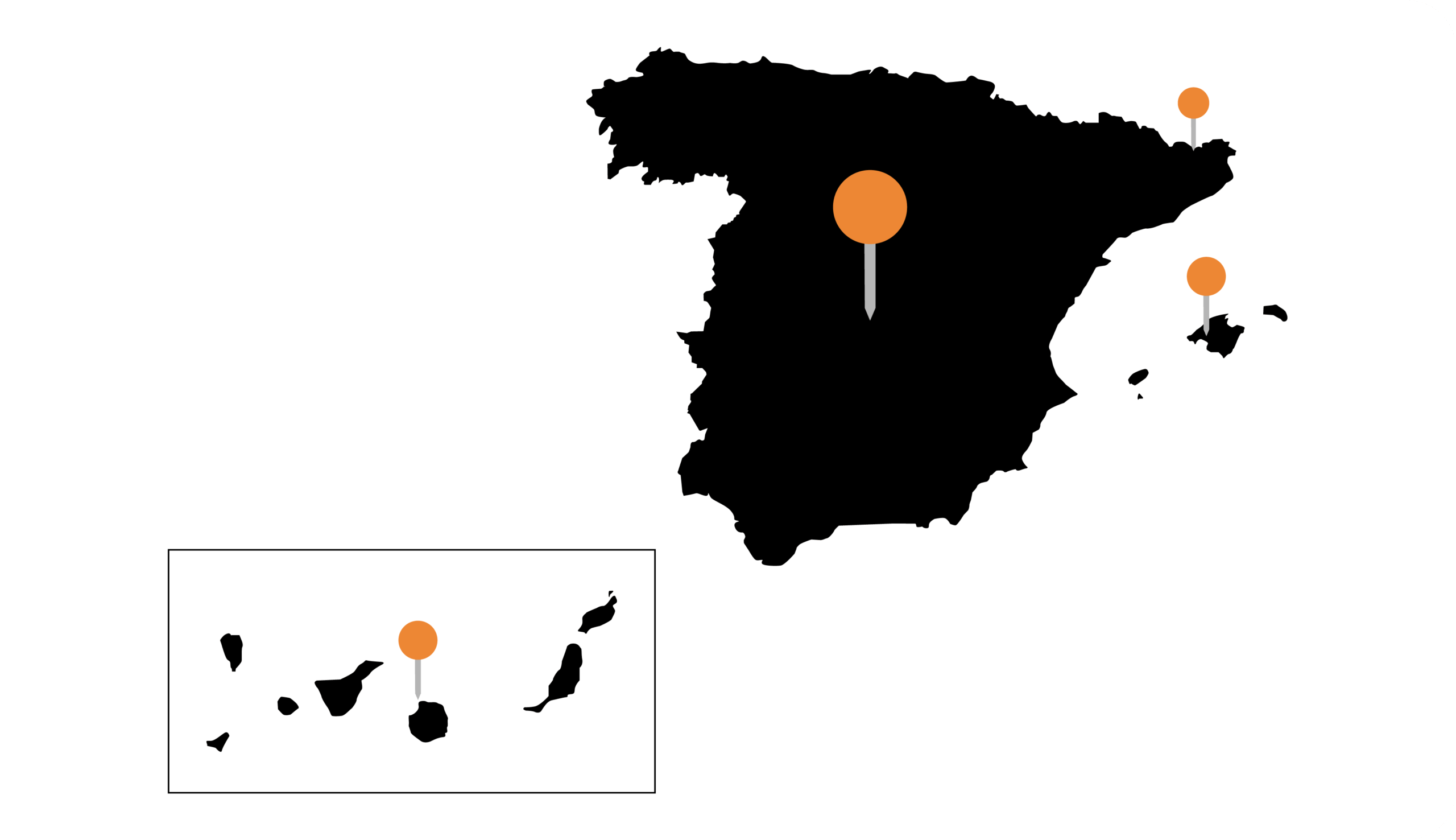 Somos capaces de cubrir tanto comercial como logísticamente toda España (Península, Islas Baleares, Islas Canarias, Ceuta, Melilla) y también operamos en Andorra