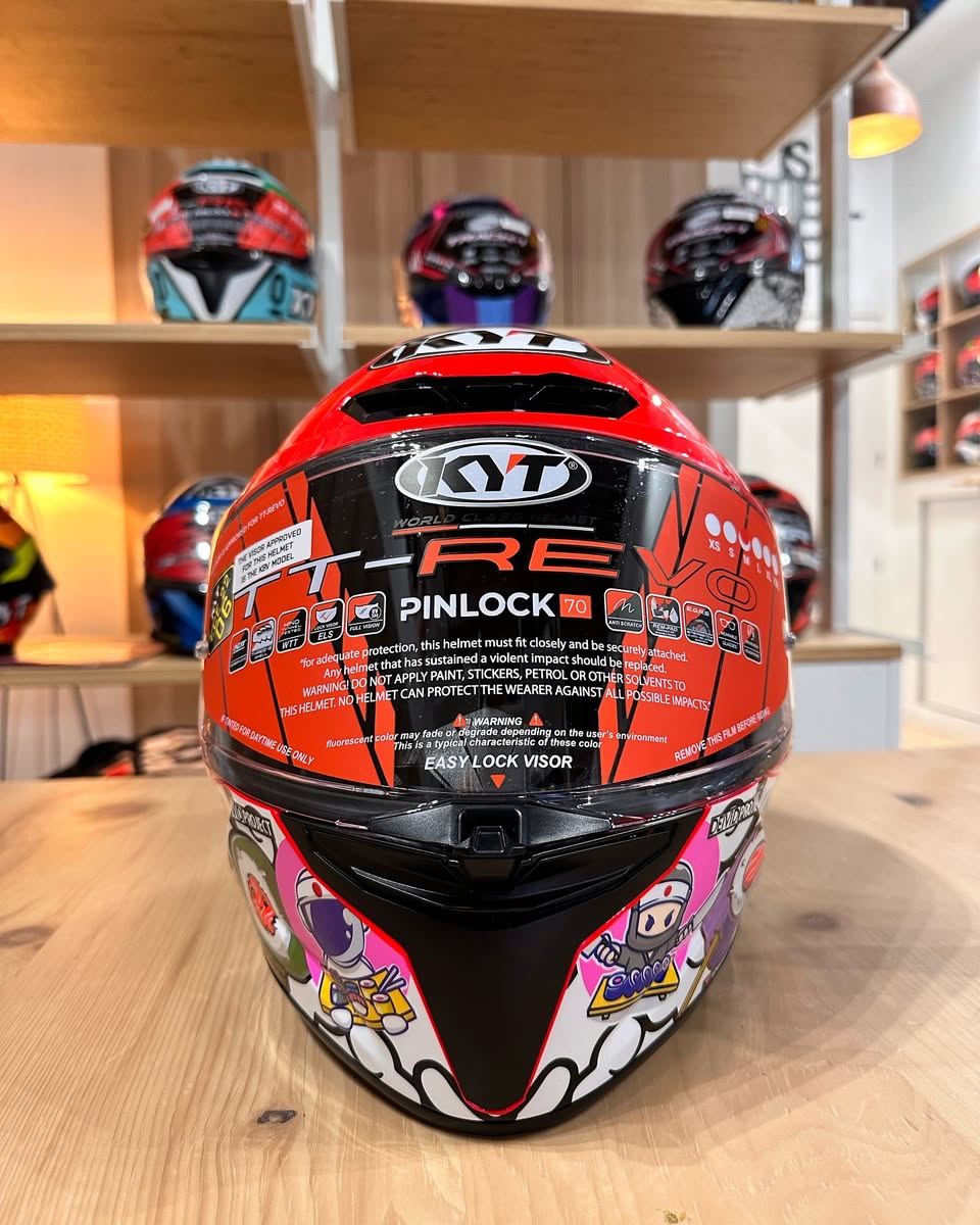 TT-Revo, el casco integral KYT nos trae esta espectacular gráfica. Sus formas cautivadoras y extremas han sido estudiadas en el túnel de viento, para lograr las mejores prestaciones sin descuidar el estilo y la ergonomía. Disponible en nuestra web!!!